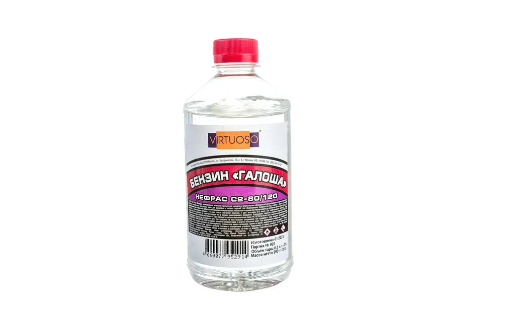 Нефрас VIRTUOSO бензин-галоша 0,5 л тех. ПЭТ 11602210 применяется при разбавлении лакокрасочных составов до требуемой массы,