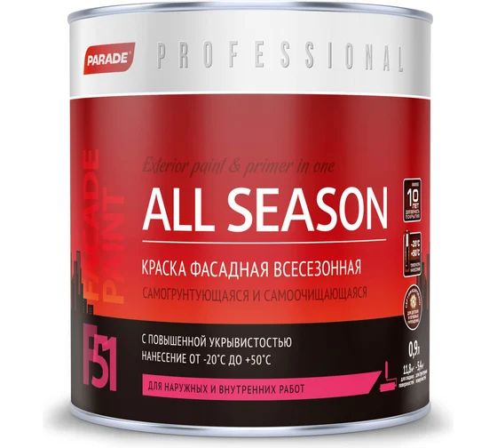 Краска фасадная PARADE F51 ALL SEASON база С 9л Россия